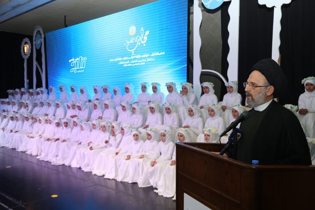 وتوجه سماحته بالشكر والتقدير للأهل على ما بذلوه من رعاية وتربية وتوجيه والذين زرعوا في زهراتنا حب الله والشعور بالمسؤولية اتجاهه والطاعة له ولم يتركوهن تتلاعب بهن مواقع الإعلام والتواصل وكل من يريد الإساءة إلى فكرهن وقلوبهن وحياتهن…