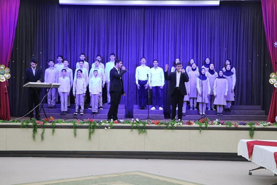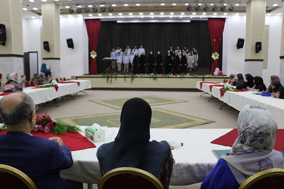 واستمع لكورال قرآني مؤلف من مجموعة طالبات من الحلقة الثالثة والقسم الثانوي، ثم استمعَ بعد ذلك الى فرقةِ الجوادِ الموسيقية.