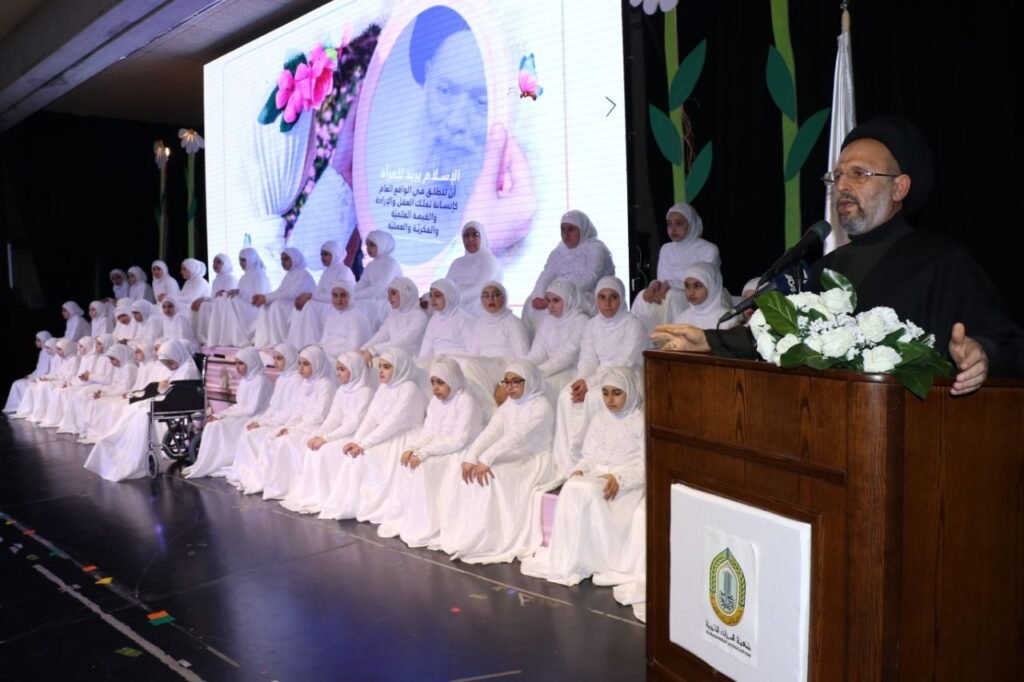 وقال: نحن اليوم نقدم لمجتمعنا فتيات يحملن كل هذه الحيوية  والثبات في ان يقدمن رسالة نموذجية بأخلاقهن وإيمانهن وإنسانيتهن، وان يكن خيرا لهذا المجتمع. ويقدمن التضحيات ليكون هذا الوطن حرا وعزيزا ومستقلا لا يباع في أسواق الاخرين ولا صدى لمشاريعهم”، كما شدد على “ضرورة تعزيز دور المرأة في المجتمع وحمايتها بكل الوسائل والقوانين والتشريعات”.