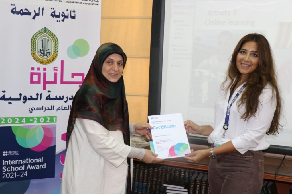 أعاد المركز الثقافي البريطاني منح شهادة الاعتماد ISA لثانوية الرحمة في حفل حضرته مديرة البرامج التربوية في المركز الثقافي البريطاني السيدة رغدة قواص، مديرة الثانوية السيدة سولاف هاشم، منسقة المشروع “تنسيق اللغه الإنجليزية للحلقه الثالثه والثانوي” الأخت هيفاء حلال، وبمشاركة فعّالة ومميزة لمجموعة من التلامذة (آلاء مكي، تمارا فقيه، شروق مصطفى، جنى حلال، عباس فرحات، وسما حطيط)، وتلامذة الصف الثامن الإنجليزي والتاسع الفرنسي ممثلين التلامذة الذين شاركوا العام الماضي.