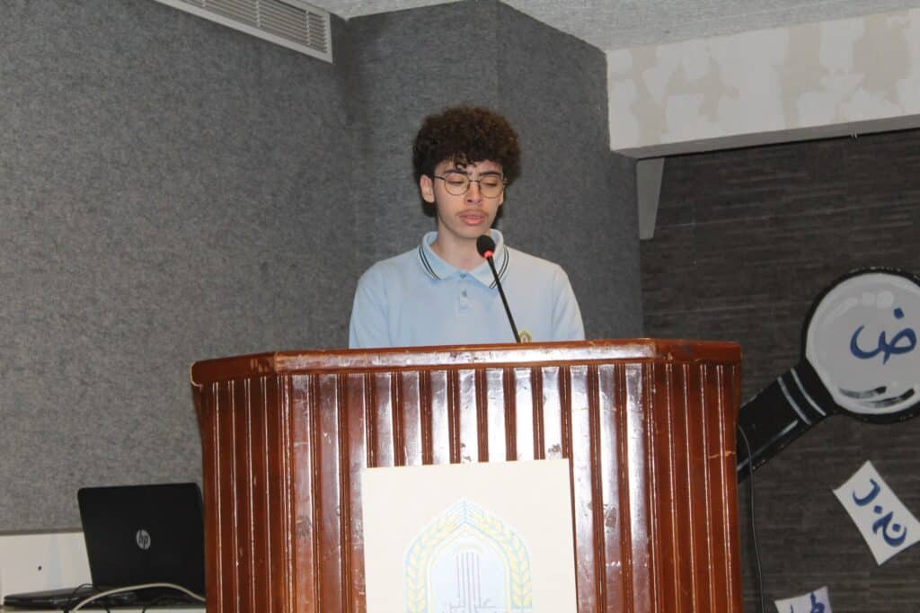 ودعا الطلاب “إلى جعل اللغة العربية لغة العلم والمعرفة والتطوّر لتظلّ شجرة مباركة تنبض بالعطاء وتروي جذور هذه الأمّة وتحمل راية الهداية والنّور لأجيالنا القادمة ، كما دعاهم إلى أن يتعلّموا كلّ يوم شيئًا جديدًا عن لغتهم وأن يساهموا في نشرها بين الجميع وأن يحافظوا على هذه اللّغة الغنيّة التي تحمل في طيّاتها النّبل والابداع وليتذكّروا بأنّ اللّغة العربيّة هي سرّ هويّتهم وقوّتهم” .