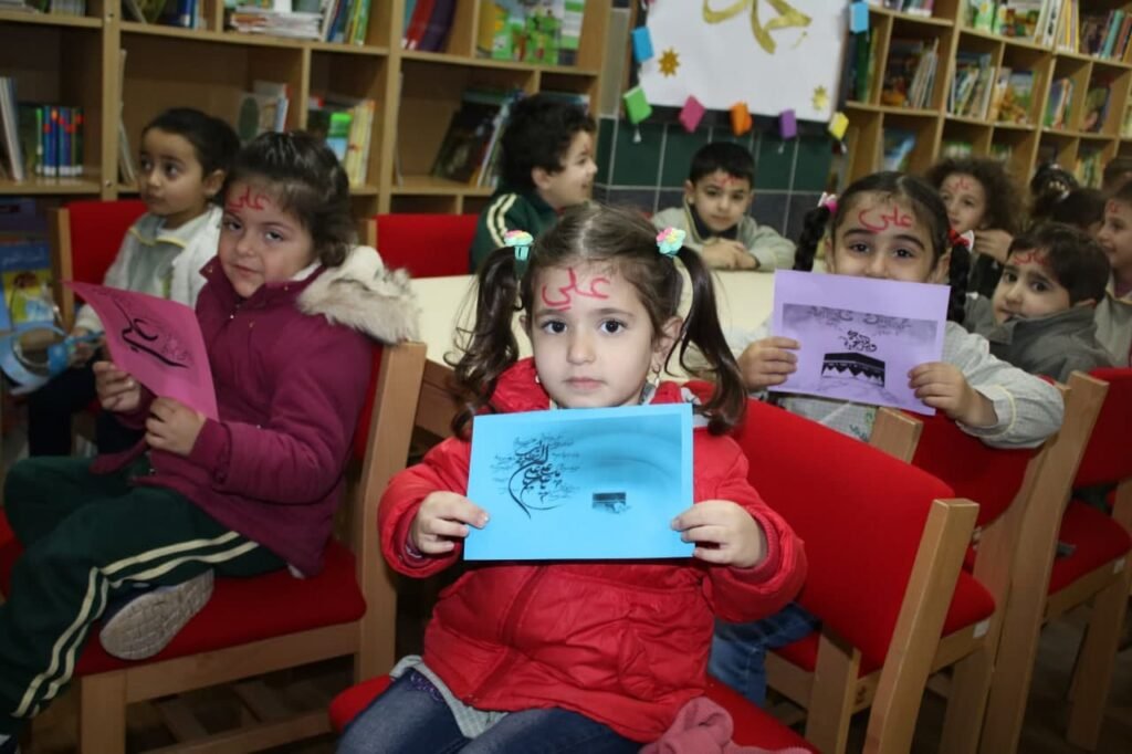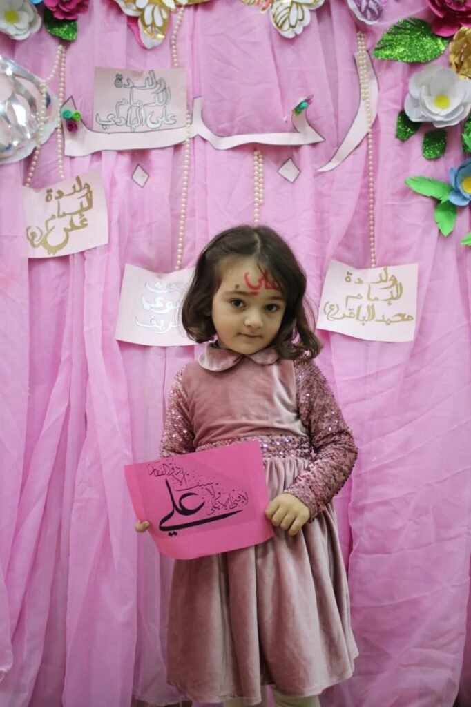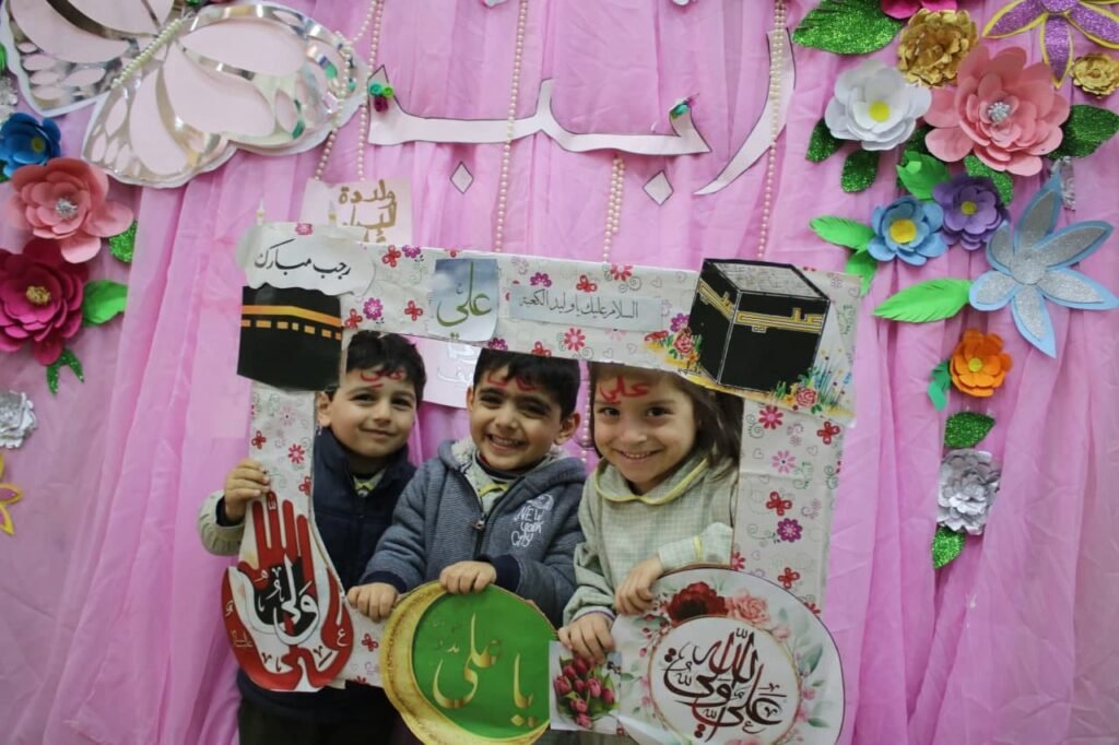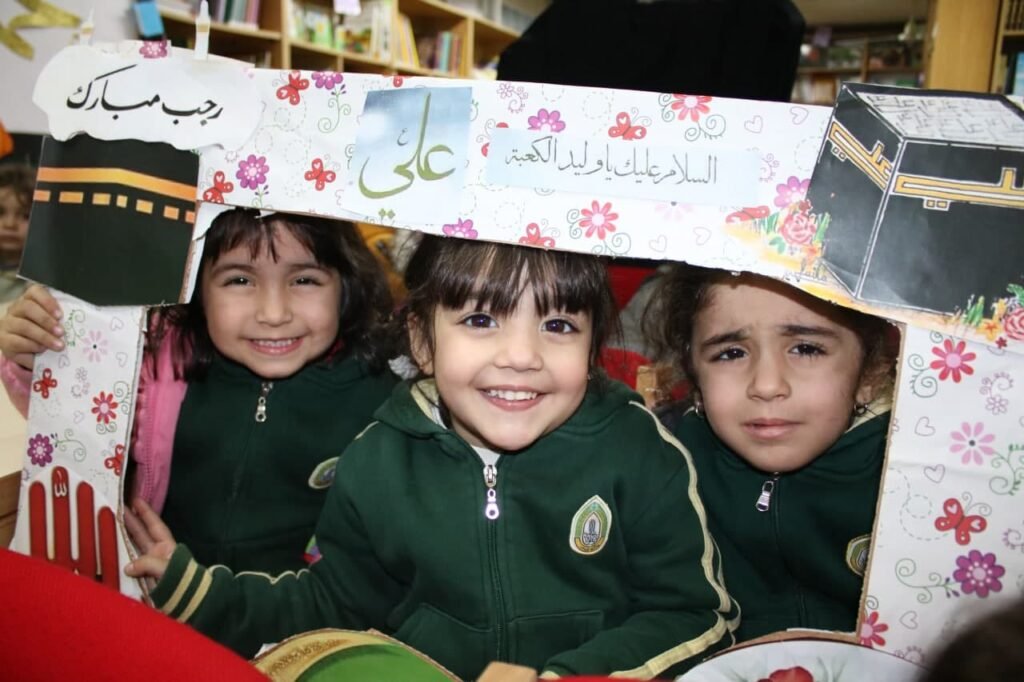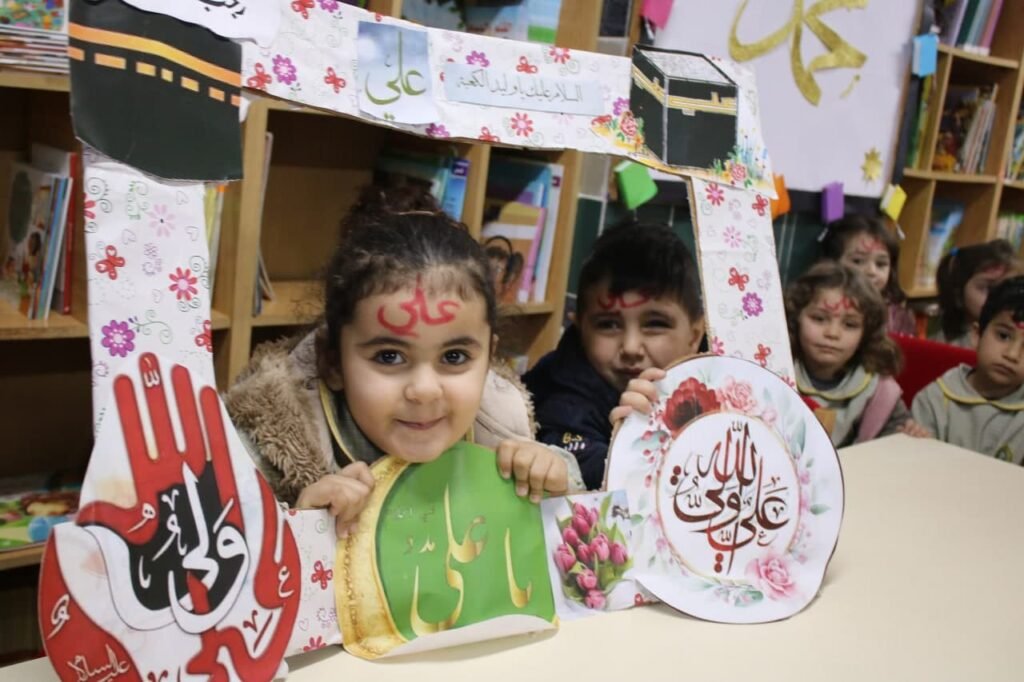 ففي رياض الأطفال شاهد التلامذة فيديو حول نشأة وسيرة الإمام علي مع مسابقة  في مكتبة المدرسة ، ونفّذ التلامذة نشاط فني بعنوان “هوية  الإمام علي (ع).