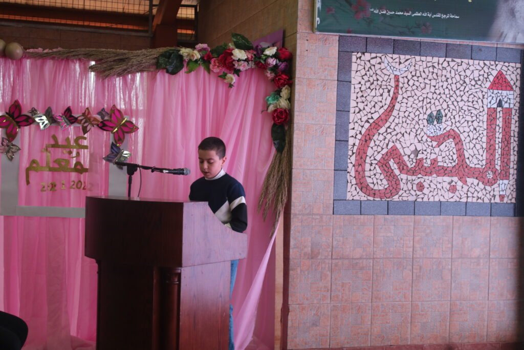 في بداية الحفل، ألقت كلمة المعلمين بأداء فني مميز ومبدع كلٌ من معلمة الرياضيات في الحلقة الثانية علا محسن ومعلمة الروضة الأولى الأخت سارة حمود والتلميذ المميز حسين ناصر الدين من الصف التاسع الأساسي، ثم قصة تعريفية قدمتها ناظرة الحلقة الثانية زاهرة زهوي.  وتضمن الحفل تكريم المعلمين وتوزيع شهادات وجوائز على المعلمين.