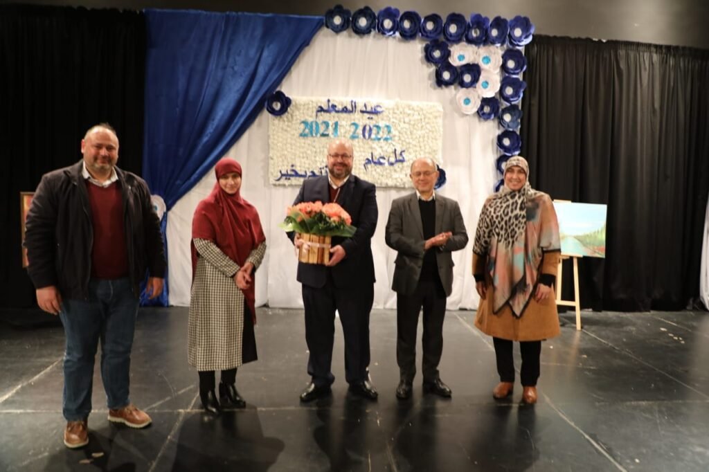 وفي نهاية الإجتماع أقيم احتفال بعيد المعلم، تحدّث فيه مدير الثانوية ثم ألقى المدير العام كلمة شدد فيها على أهمية الصبر في الأزمات أسوة بالأنبياء للإستمرار بتأدية رسالة المبرات في تثقيف وتعليم جيل واع منتج وصالح لمجتمعه ووطنه.
