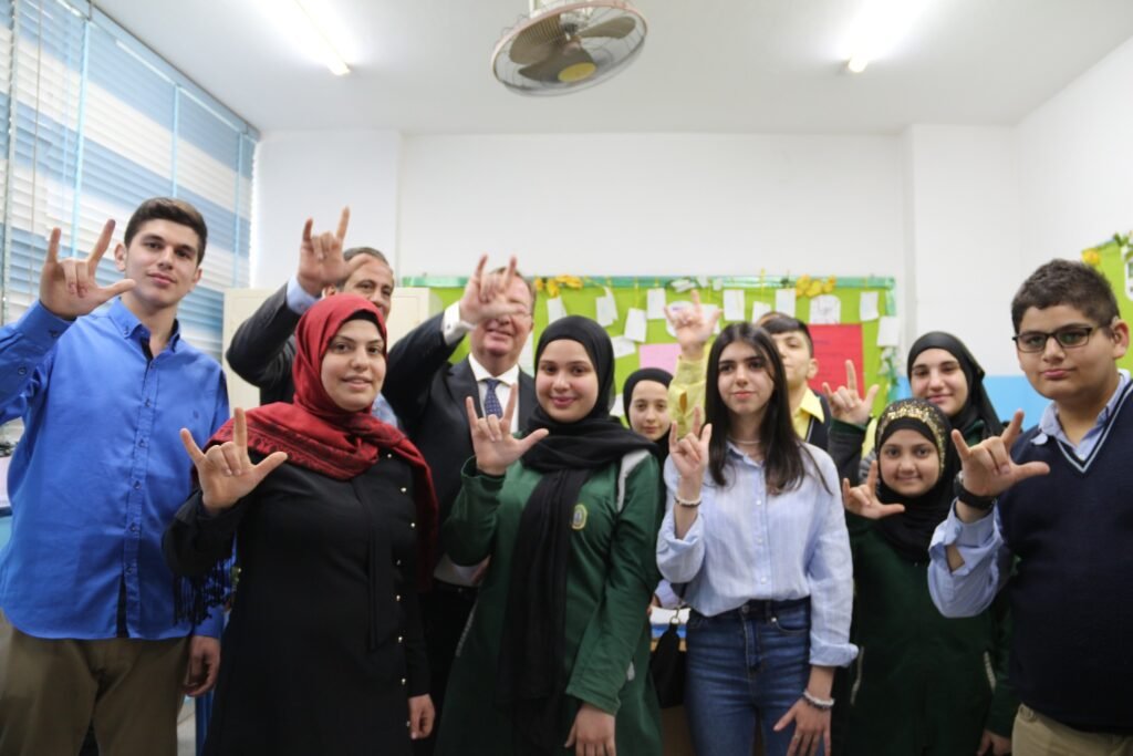 بعد الاستقبال الذي اعدّته المؤسسة جال الوفد على الأقسام المدرسية والعلاجية، وتوقف في الصف التاسع في مدرسة الرجاء للصم للتنويه بالتلميذة سيلينا دعيبس الفائزة بمسابقة سفير ليوم واحد التي دعت إليها السفارة البريطانية.