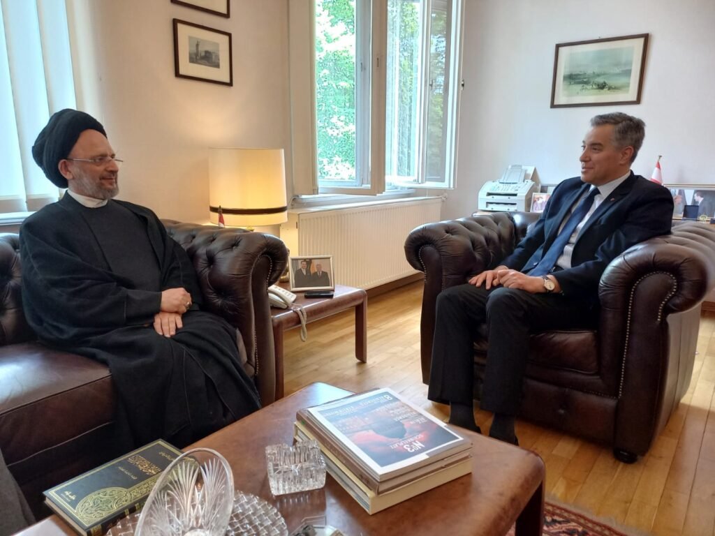 بعد الدنمارك توجّه العلّامة فضل الله إلى ألمانيا، فزار مقرّ السفارة اللبنانية في برلين حيث كان في استقباله سفير لبنان في المانيا مصطفى أديب الذي تداول معه في عدد من القضايا التي تخصّ الجالية اللبنانية والعربية والإسلامية في المانيا. وأشاد سماحته “بالدور الإيجابي الذي يقوم به سعادة السفير ولاسيما في تعزيز التواصل والعلاقة بين أبناء الجالية اللبنانية وانفتاحهم على الجاليات الأخرى”.