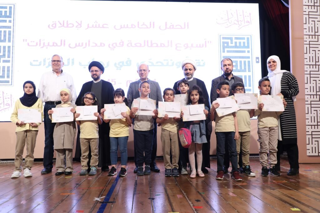 وفي الختام تم توزيع شهادات تقدير وجوائز مالية على التلامذة الفائزين في نشاط “نقرأ ونتحدى في رحاب المبرّات”.