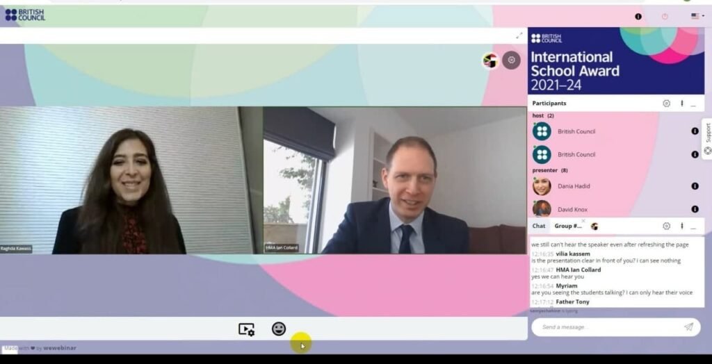وخلال حفل افتراضي نظمه المجلس الثقافي البريطاني، جرى الإعلان عن أسماء المدارس الفائزة، بحضور وزير التربية و التعليم العالي عباس الحلبي، سفير المملكة المتحدة في لبنان اين كولرد، مدير المجلس الثقافي البريطاني ديفيد نوكس ، مدير عام التربية فادي يرق، رئيس المركز التربوي للبحوث والإنماء جورج نهرا ومديرة قسم البرامج التربوية في المركز الثقافي البريطاني رغدة قواص.